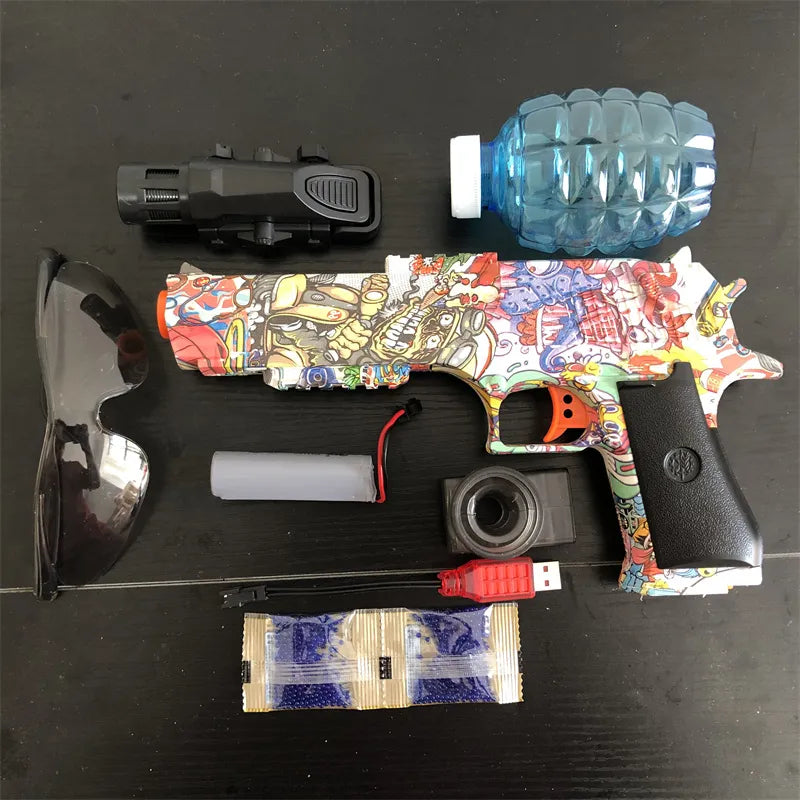 Get ready for fast-paced adventures and unforgettable moments with this high-quality toy gun. Crafted from high-quality and durable plastic, this rechargeable and automatic airsoft pistol splatter toy gun provides hours of excitement and entertainment for players of all ages. The blaster uses soft and water-based gel balls, which are safe for both indoor and outdoor play. Suitable for kids and adults.