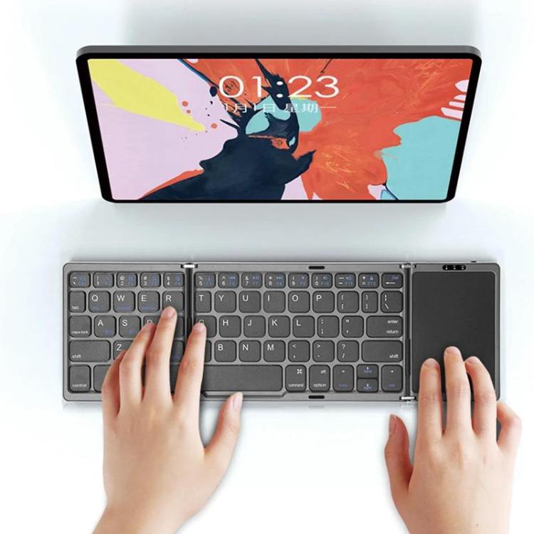 Turn Any Location into Your Office: Join the Elite Club of Digital Nomads and Transform Your Lifestyle – Work, play games, Thrive, Prosper! Break Free from the 9-to-5 Grind, and Unlock Unlimited joy Potential! Meet our Mini Folding Bluetooth Keyboard with Touchpad