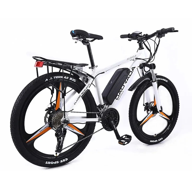 All-Terrain Performance: Built for adventure, this electric mountain bike features 26-inch tires designed to tackle diverse landscapes, including snow-covered paths. Navigate rough trails with confidence and take your off-road experience to the next level.