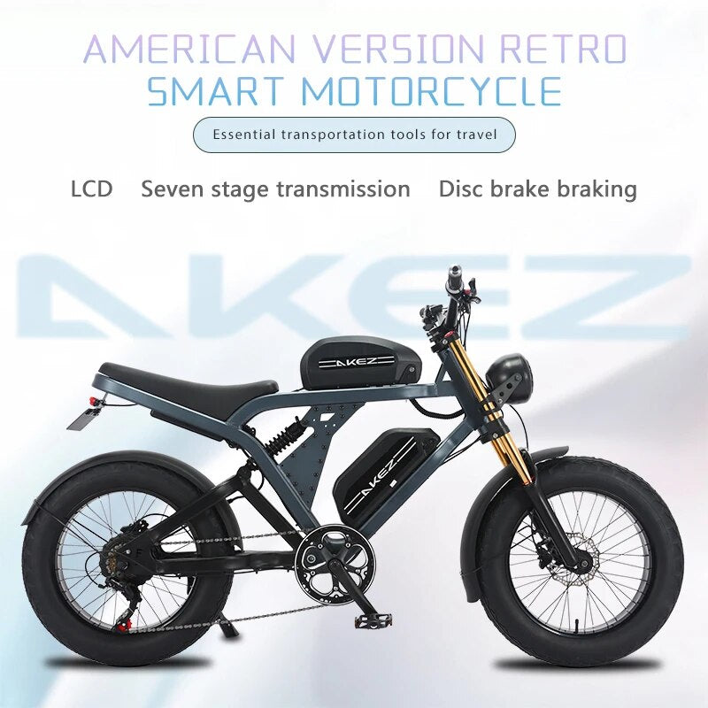 2023 New 48V 750W 1500W AKEZ Aluminum Frame Electric Bicycle Retro Motorcycle EBike