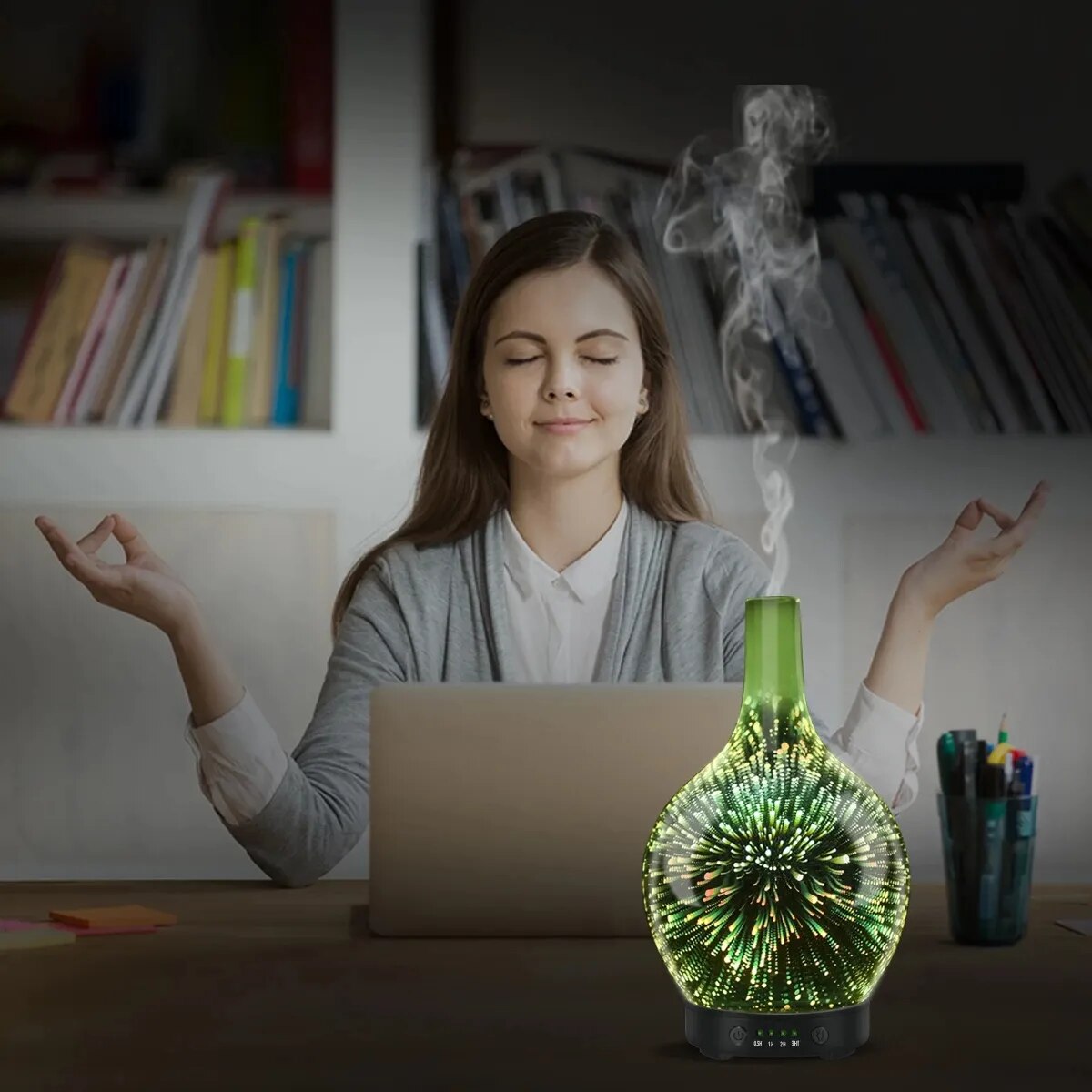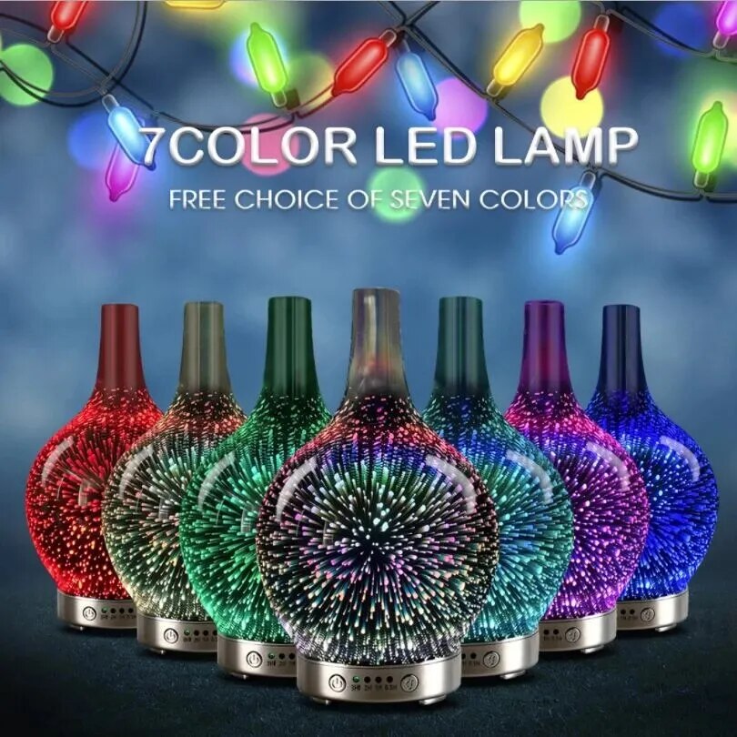 3D Fireworks Glass Vase Humidifier with 7 Color Led Night Light Aroma Essential Oil Diffuser Cool Mist Maker for Home Office