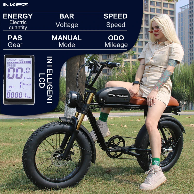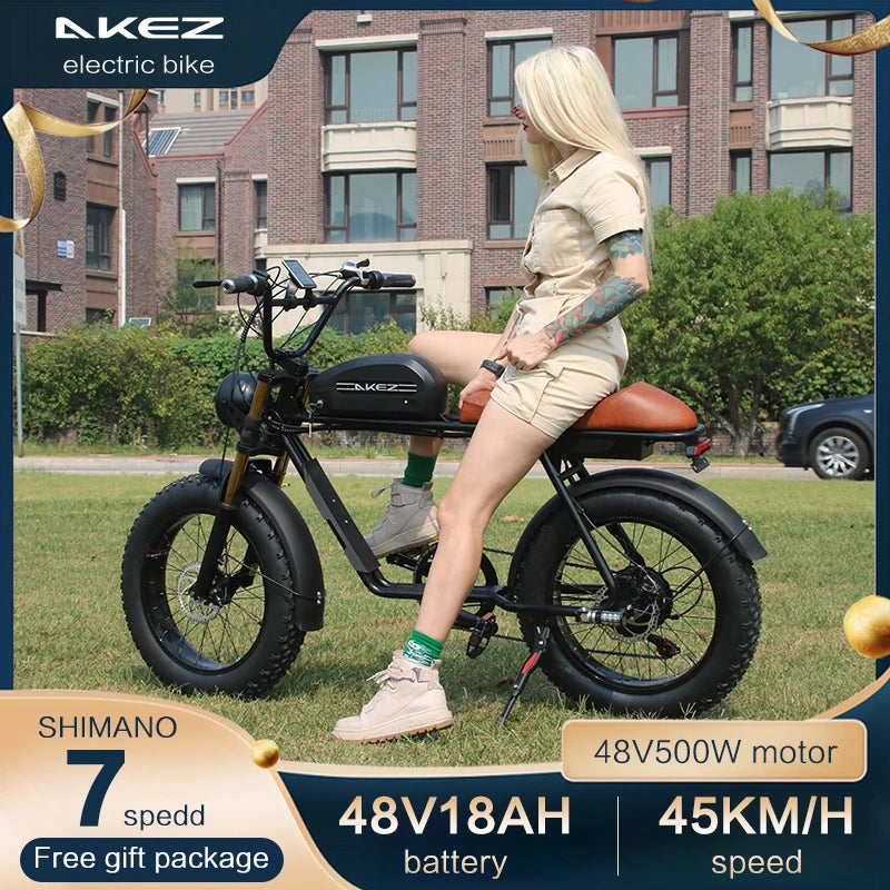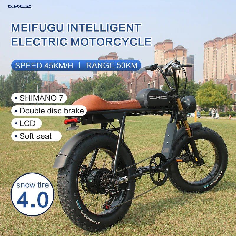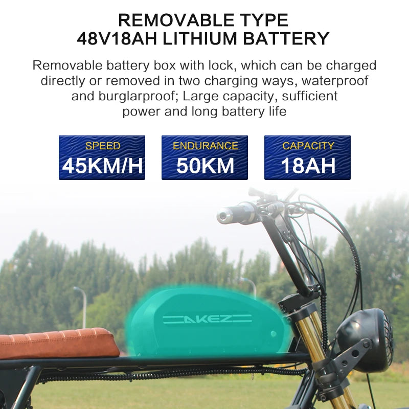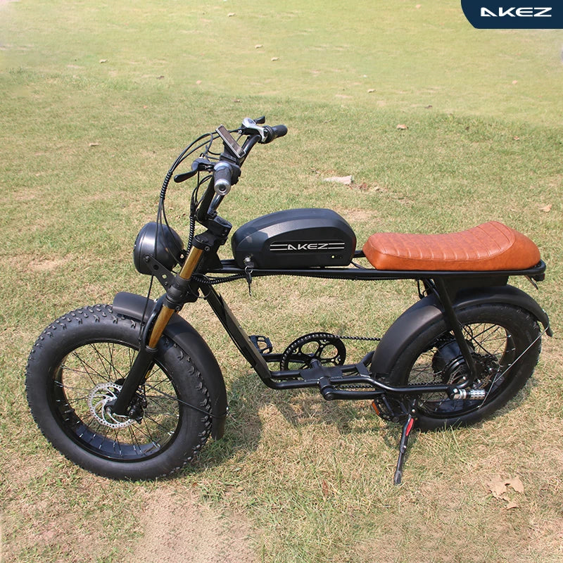 48V 500W 1500W Dual Battery AKEZ Cool Electric Bicycle Retro Motorcycle Off-Road Ebike