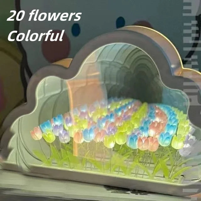 The Eternal Blossom LED Mirror Light offers a soft and uniform light, perfect for creating a snug and intimate atmosphere. Transition from a functional mirror to a soft, passion-evoking tulip night light with just a flick of a switch. Its delightful hue adds a touch of elegance to any room, making it more than just lighting — it's a conversation starter.