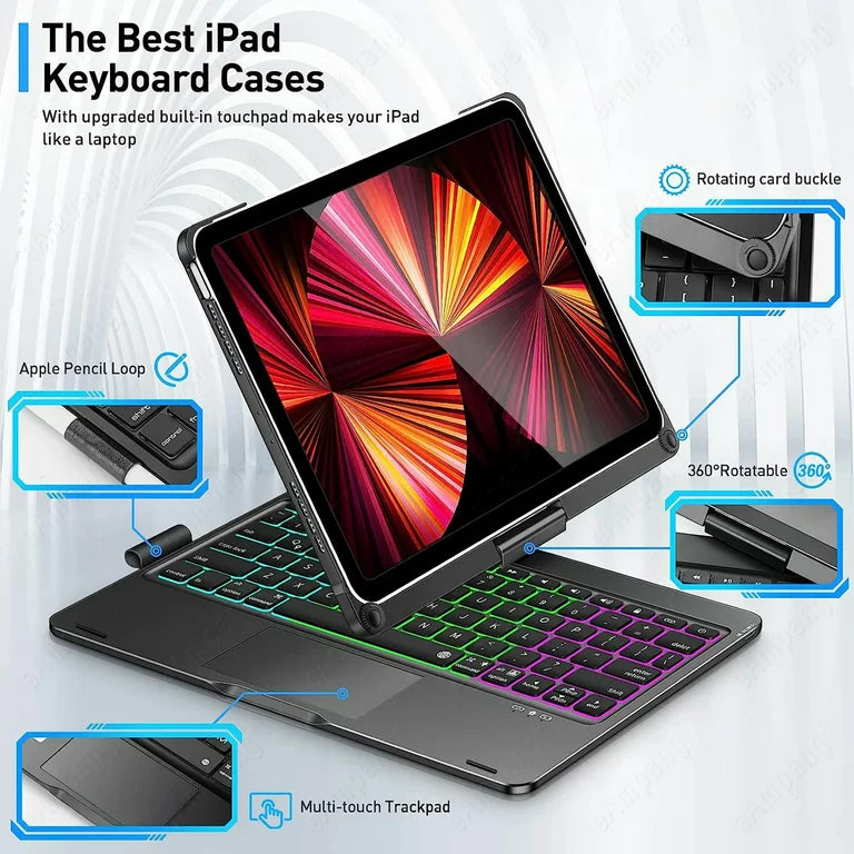 Case for iPad With Built in Keyboard & Multi Touchpad + Screen 360° Rotation + Free Screen protector & Cleaning Kit - 🚨 86% OFF LAST DAY