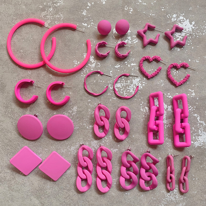 Pink Acrylic Chain 925 Silver Needle Barbie