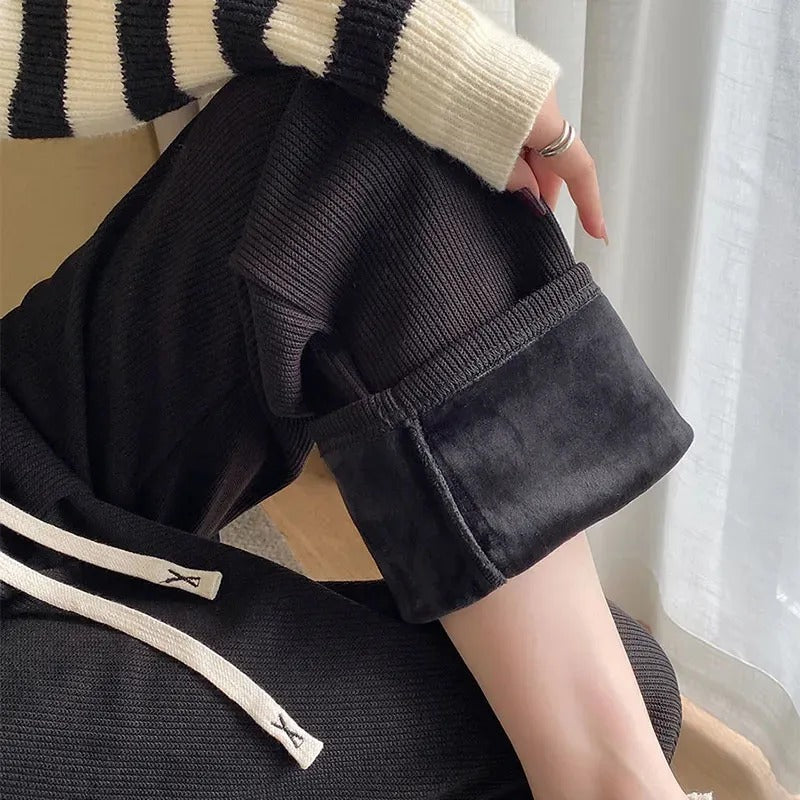 Embrace the season with confidence and elegance! Our trousers are designed with a plush corduroy fabric that not only provides exceptional warmth but also adds a touch of texture and elegance to your winter outfits. The wide-leg style offers a relaxed and comfortable fit, allowing you to move freely. Suitable for chilly winter days.