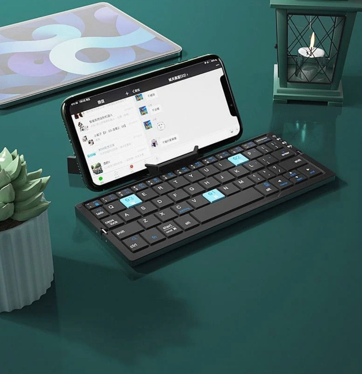 Our KeyFold Pro isn't just a treat for your fingers; it's a powerhouse for your devices too! Fold it, pack it, and when you're ready, unfold a world of productivity. The built-in stand props up your phone, and with the charger included, you can keep your devices alive as you type away.