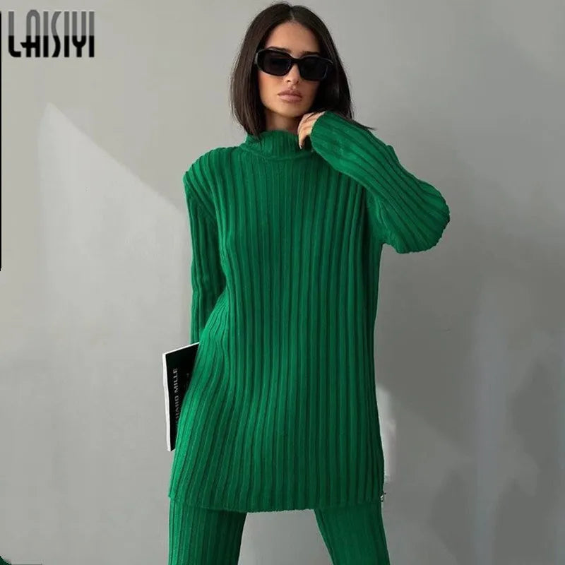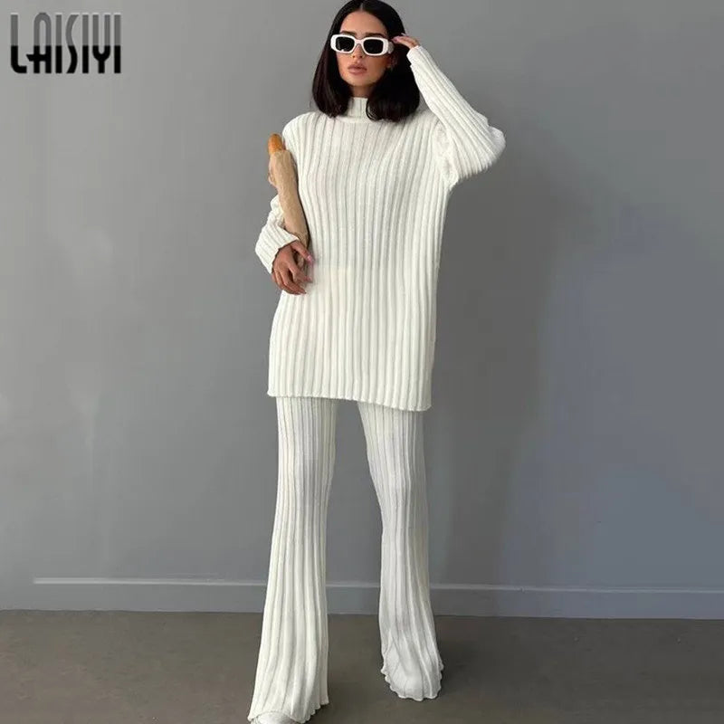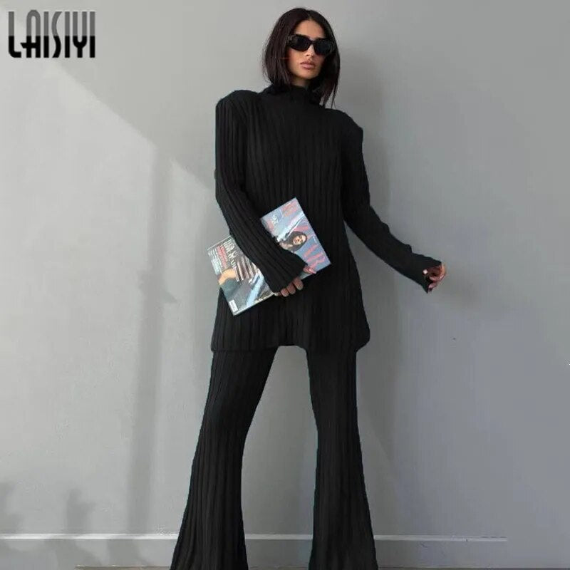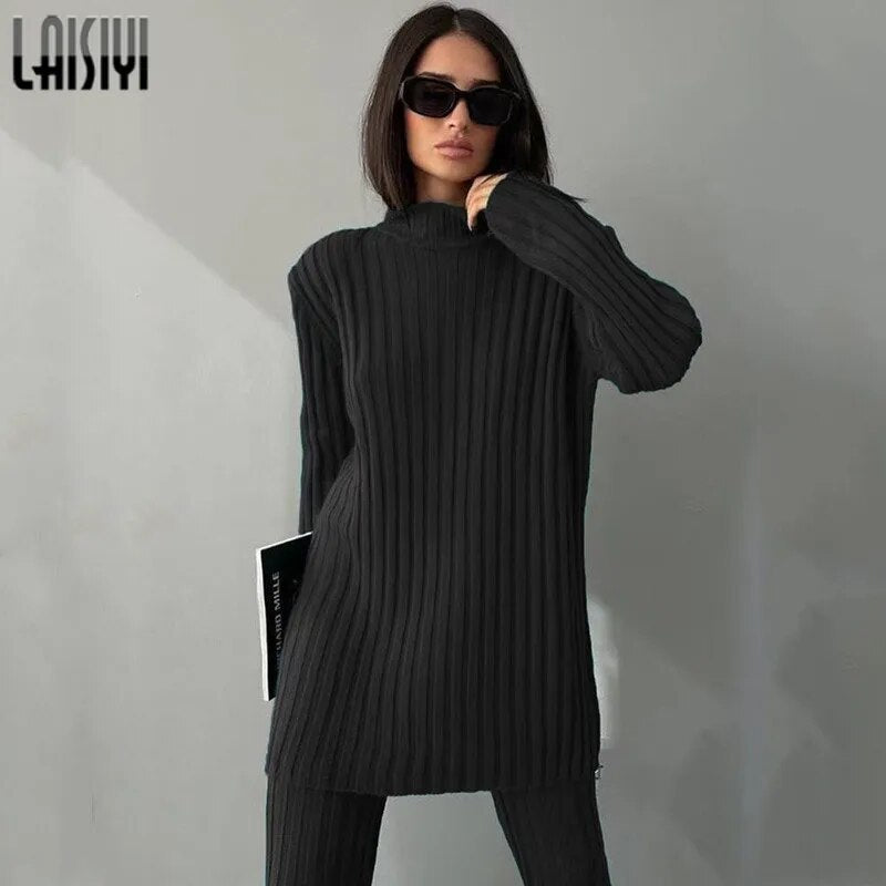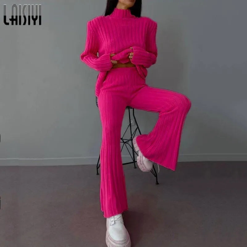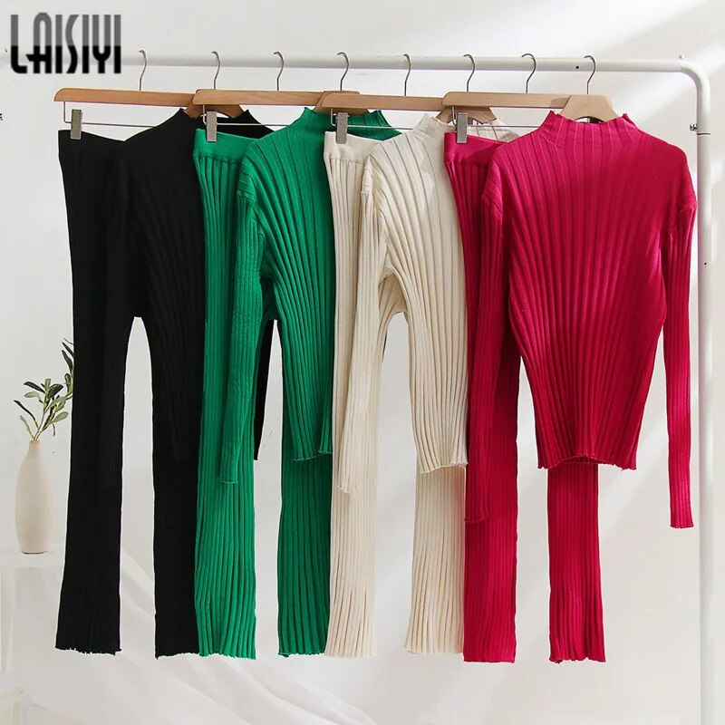 LAISIYI Autumn Sweater Sets Women 2 Piece Suits Winter Knitted Outfits Long Sleeve Tops High Waist Leggings Slim Basic Knitwear