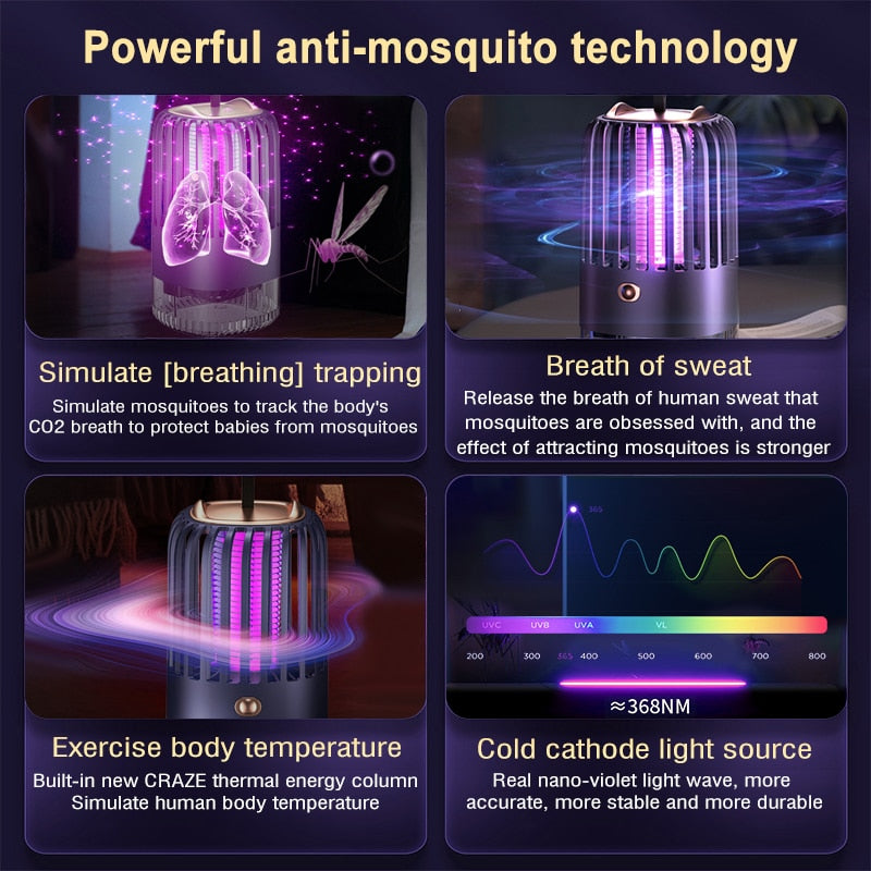 Mosquito Killer Lamp Mute Electric Insect Trap USB Recharg Fly Bug Zapper Radiationless Mosquito Repellent For Bedroom Outdoor